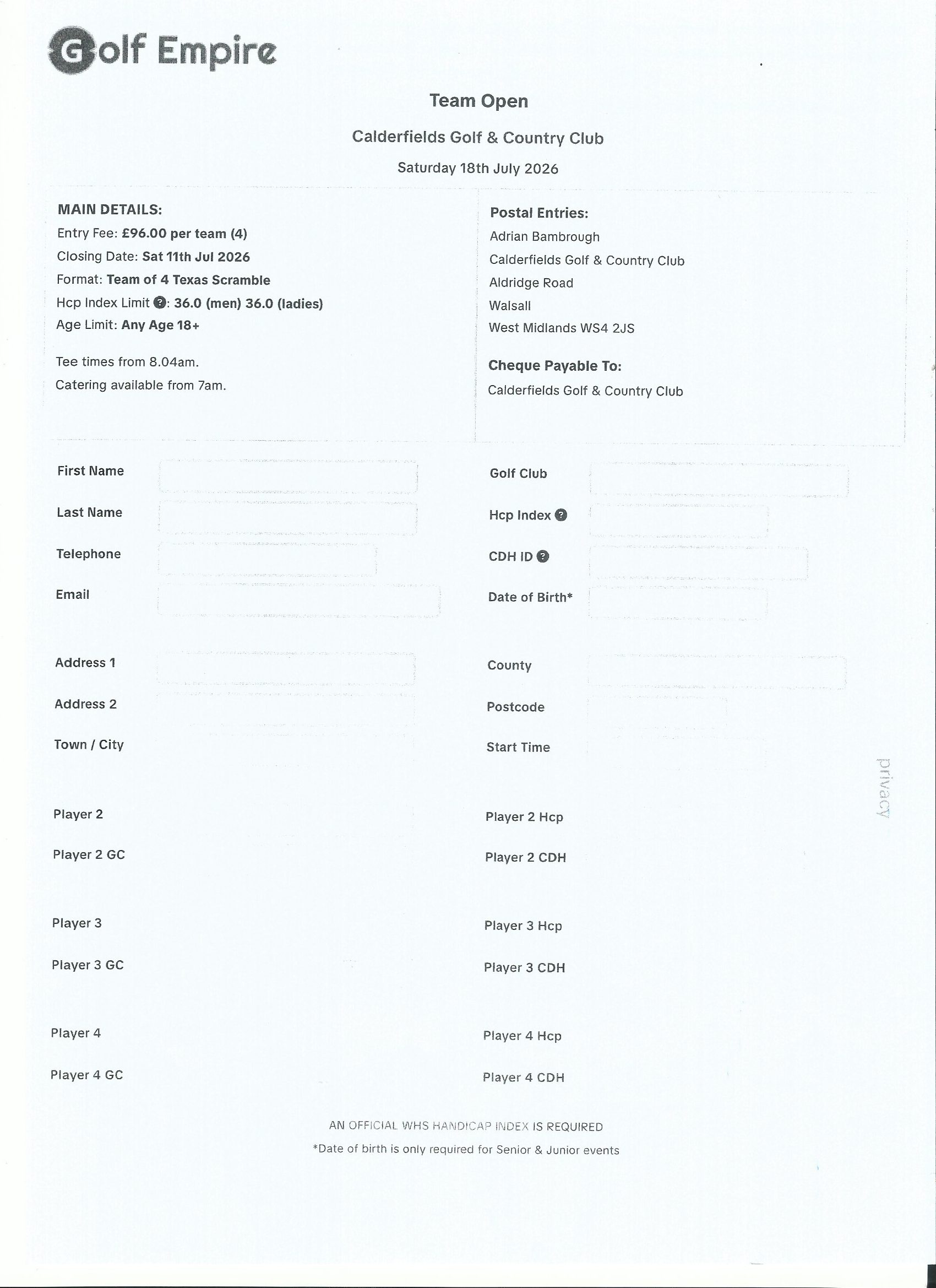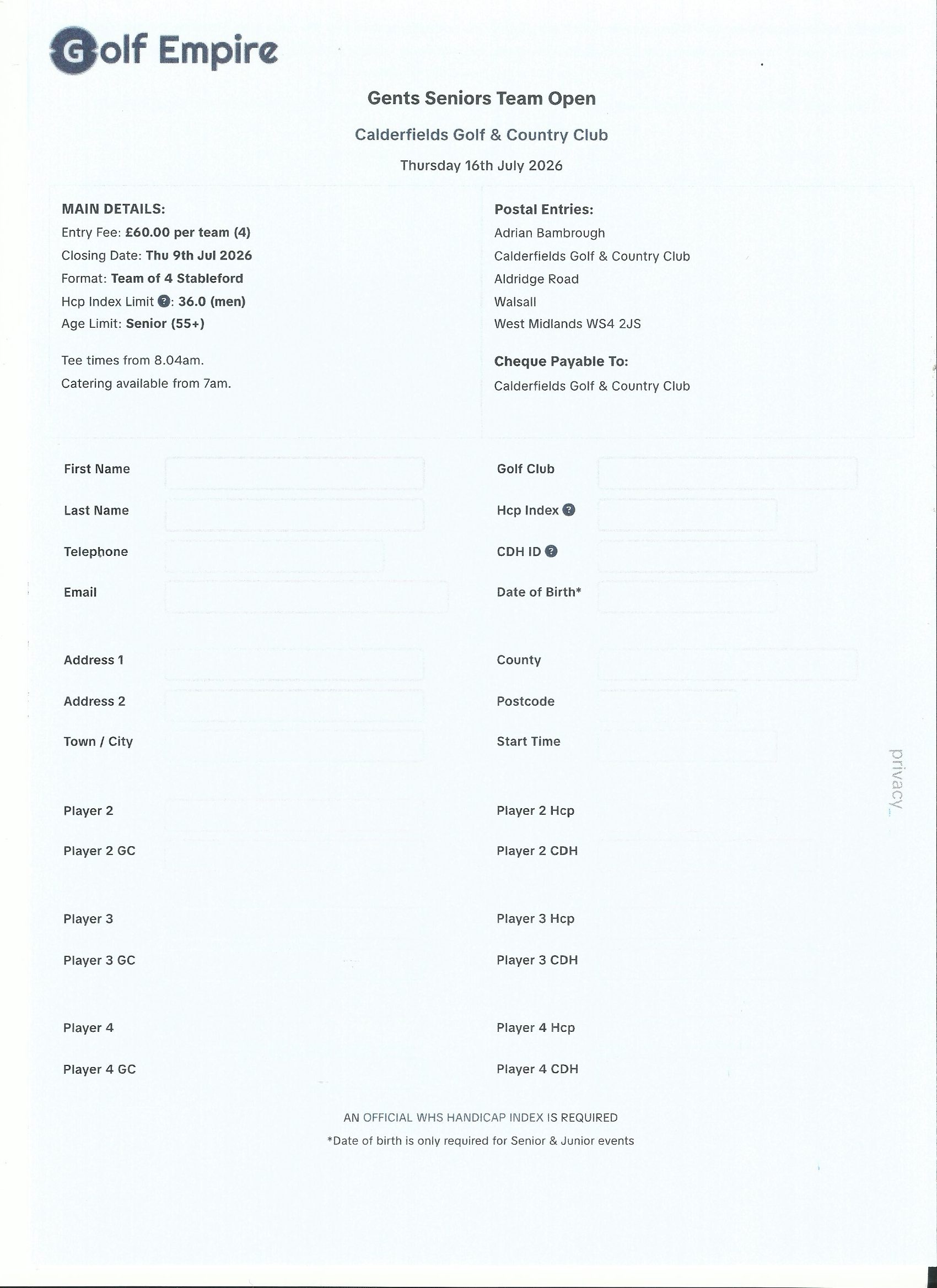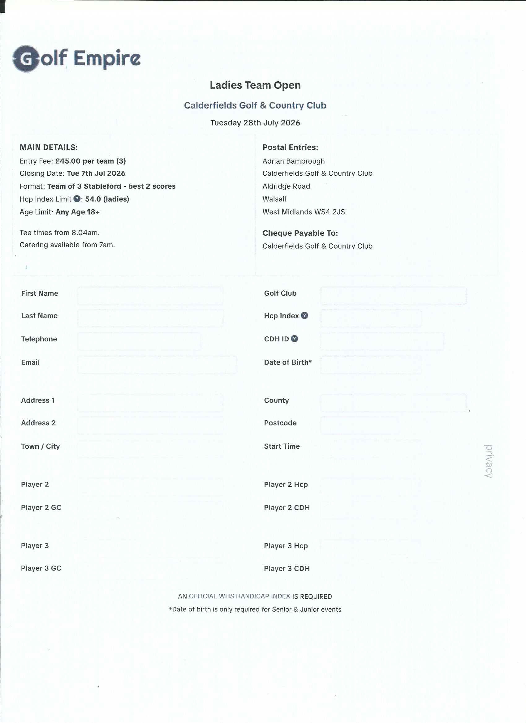 Entry Forms are available on Golfempire.co.uk or click on the form below to download it, please download both documents.