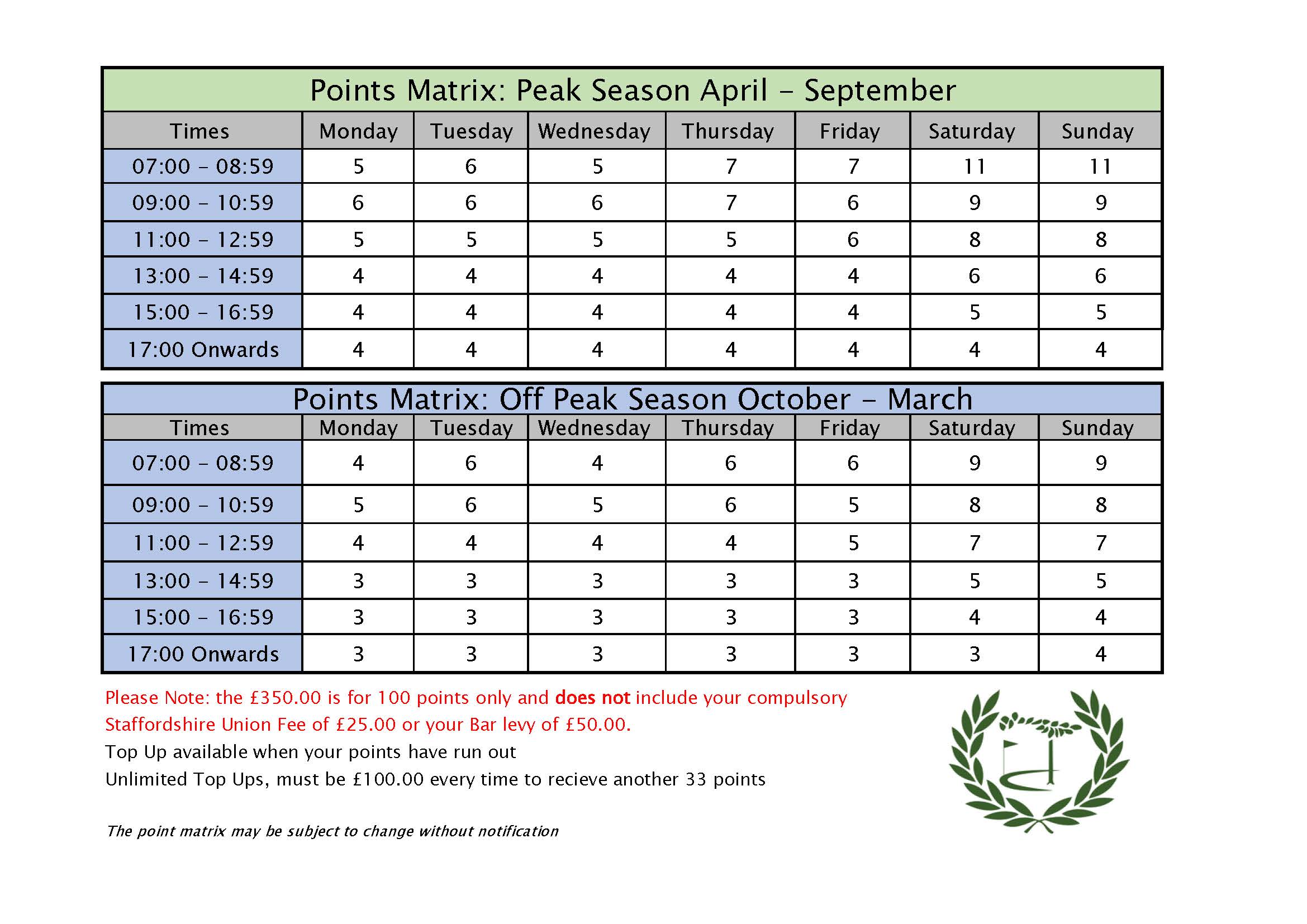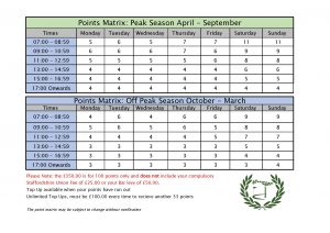 The Points Matrix shows when you can use your points and how many points will be deducted from allocation.