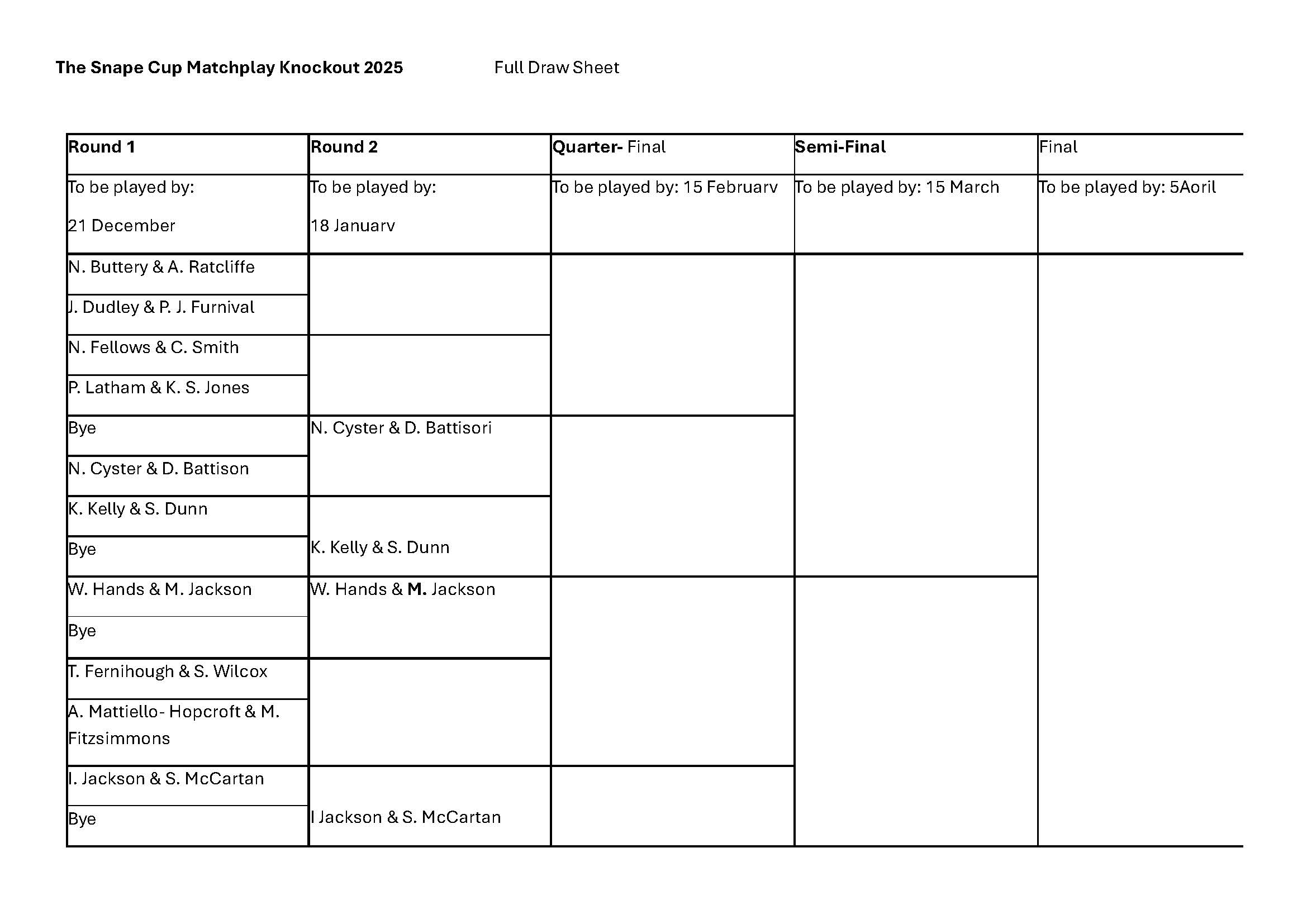 After playing, please record the result on the club computer (i.e. Won 5/4 Lost 4/5). This will put you through to the next round automatically. Yellow Tees.