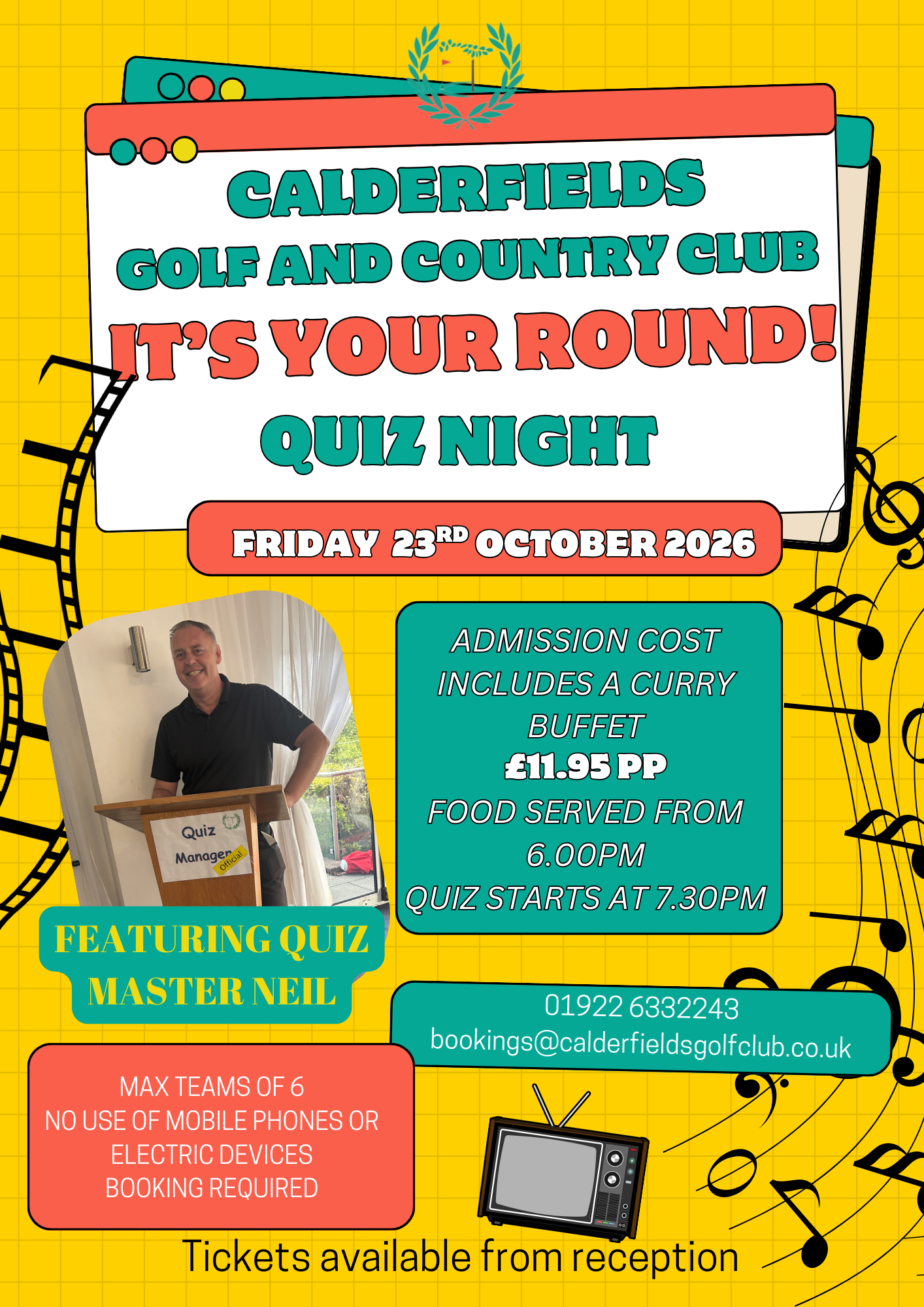 October’s It’s Your Round Quiz hosted by Quiz Master Neil with be on Friday 23rd